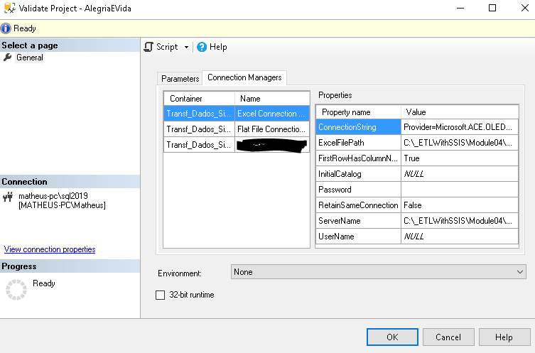 Fazer uma validação dos seus projetos (que consequentemente validam os pacotes presentes naquele projeto) ajuda a prever e prevenir possíveis problemas de conectividade e de incompatibilidades com as tarefas do pacote e o servidor. O validate não é nenhuma bala de prata e mesmo quando retorna um resultado de sucesso, ainda assim, o seu pacote pode falhar durante a execução. Mas, ao executar o validate, você consegue eliminar vários problemas de conectividade antes de agendar seus pacotes para que sejam executados.