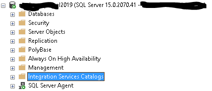 1 – Abra o SSMS e navegue até o Catálogo do Integration Services